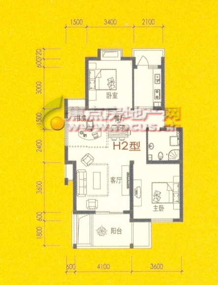 3室2厅1卫-中尚橄榄树花园H2 93.96平方米3室2厅1卫
