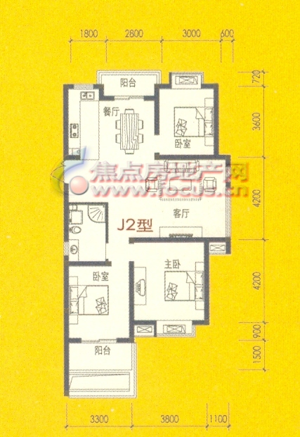 3室2厅1卫-中尚橄榄树花园J2 109.28平方米3室2厅1卫