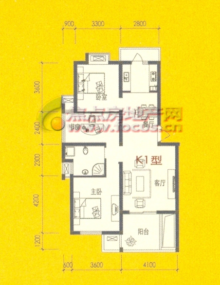 3室2厅1卫-中尚橄榄树花园K1 99.36平方米3室2厅1卫