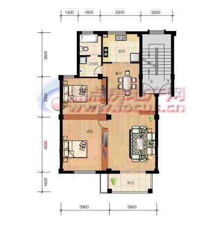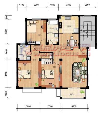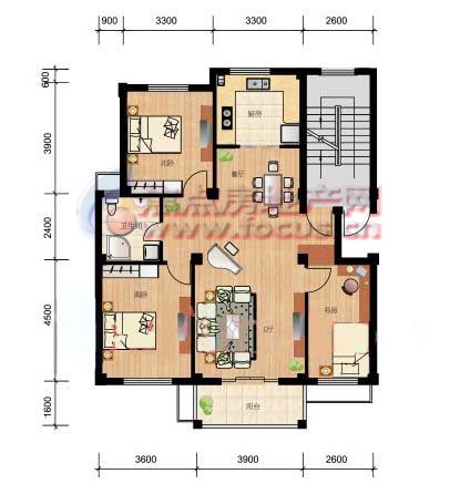 3室2厅1卫-众孚水榭花都 3室 2厅 1卫106.38平方米b