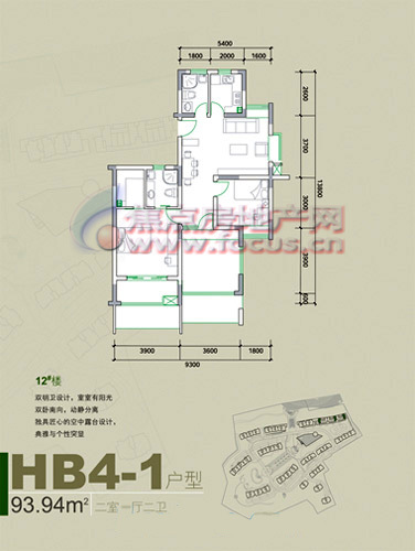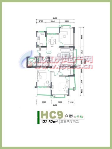 3室2厅2卫-人和家园9号楼HC9户型132.52平米三室两厅两卫