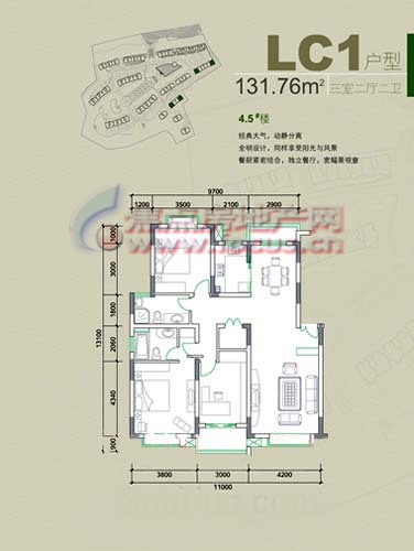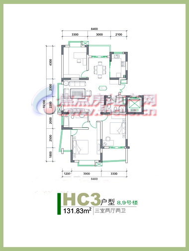 3室2厅2卫-人和家园 8,9号楼HC3户型131.83平米三室两厅两卫