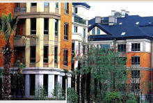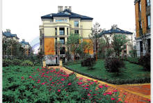设计:多层、小高层公寓以简洁明快的几何线条勾列大面积中空玻璃,大块面的立面造型;联体别墅以大客厅、豪华落地窗等手法表现大户风范,夹层功能空间、双层退台设计手法,配以丰富的外立面,营造全新的居家氛围。