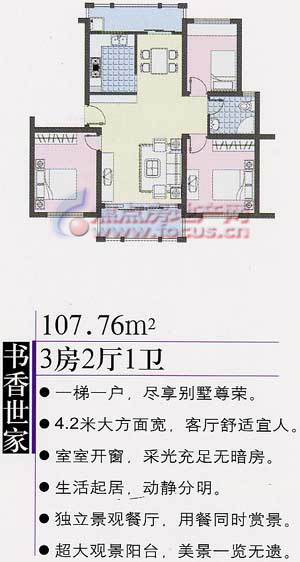 3室2厅1卫-天泉华苑3室2厅1卫107.76平方米D