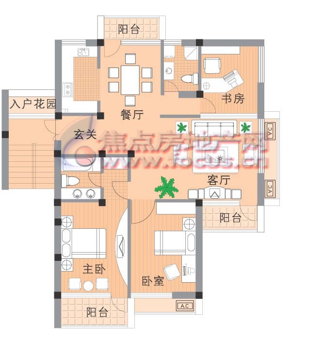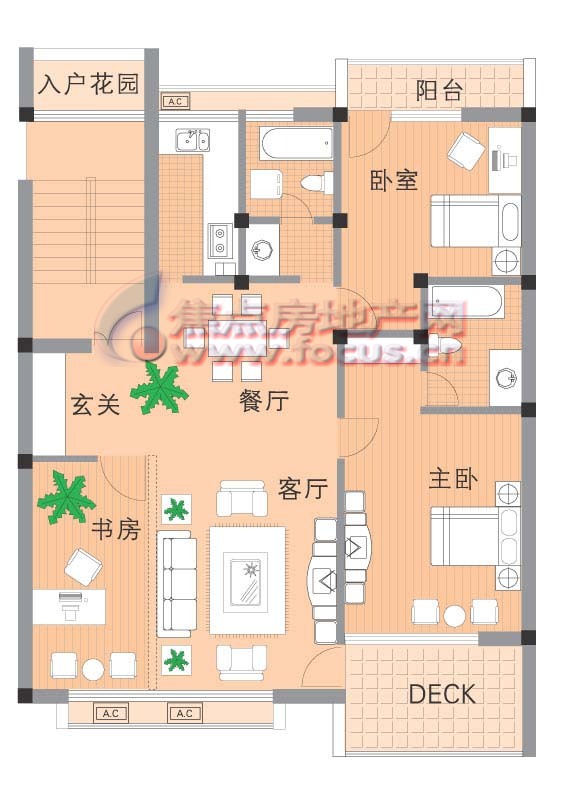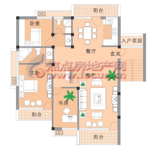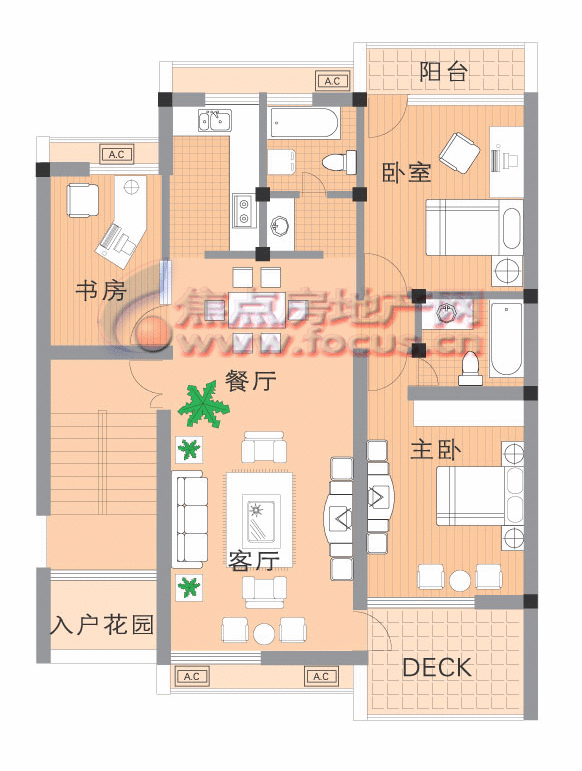 3室2厅2卫-东方华立俊园D120-4 124.71平方米3室2厅2卫