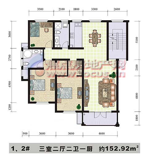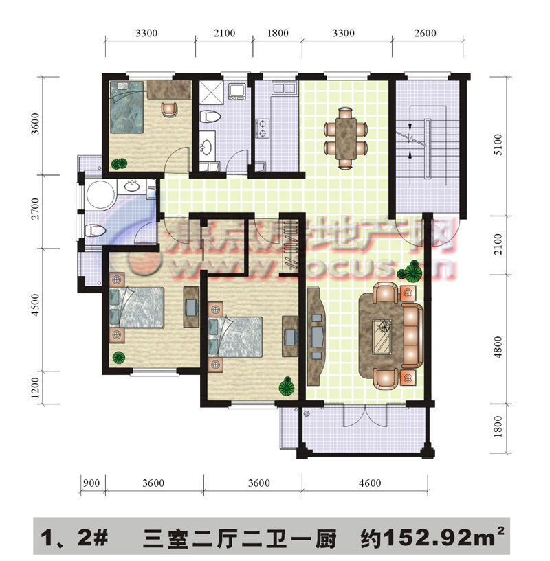3室2厅2卫-金世纪星都家园 1、2三室二厅二卫152.92平方米