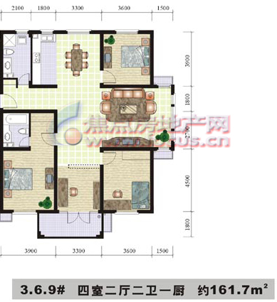 4室2厅2卫-金世纪星都家园3.6.9# 四室二厅二卫一厨161.7平方米