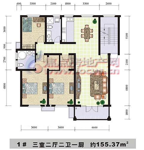 3室2厅2卫-金世纪星都家园1三室二厅二卫155.37平方米
