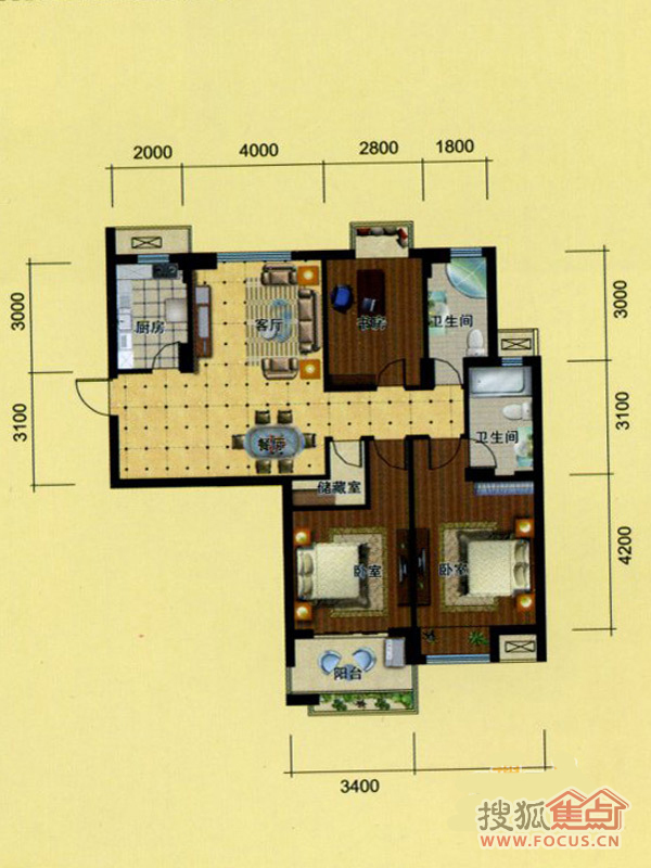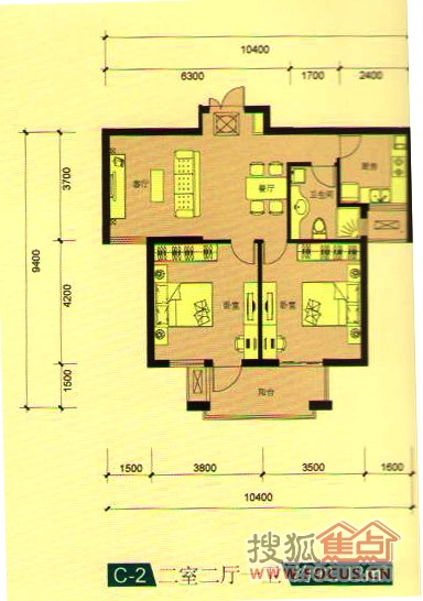 2室2厅1卫-2室2厅1卫92方C-2