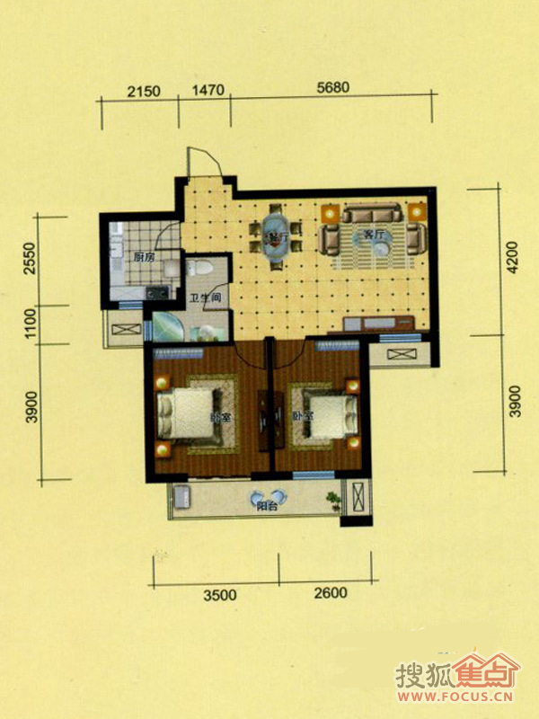 2室2厅1卫-2室2厅1卫73方B-2