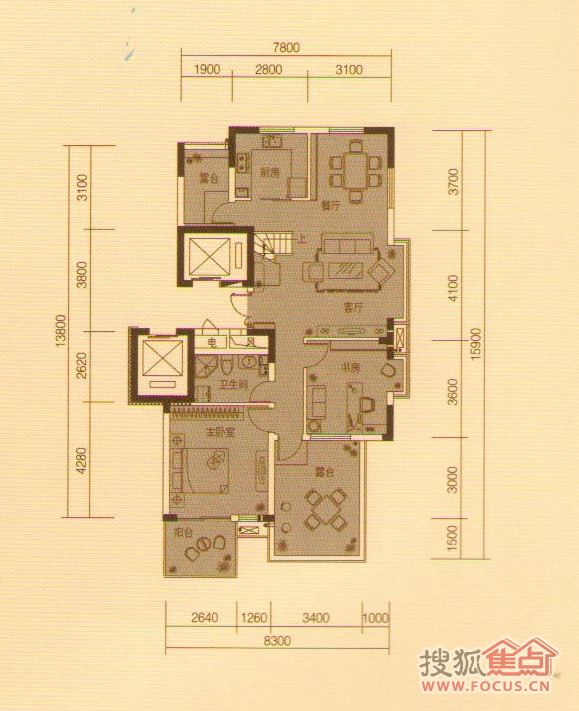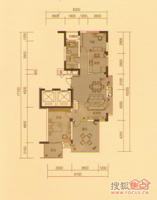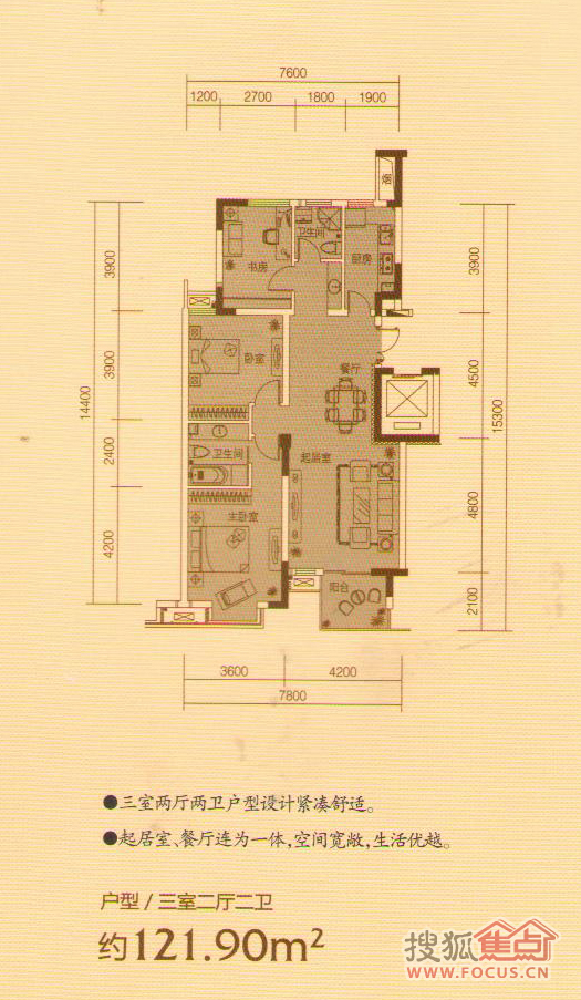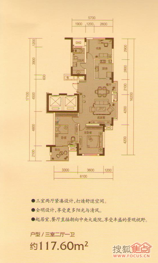 3室2厅1卫-九月庭院3室2厅1卫-117.60平米户型