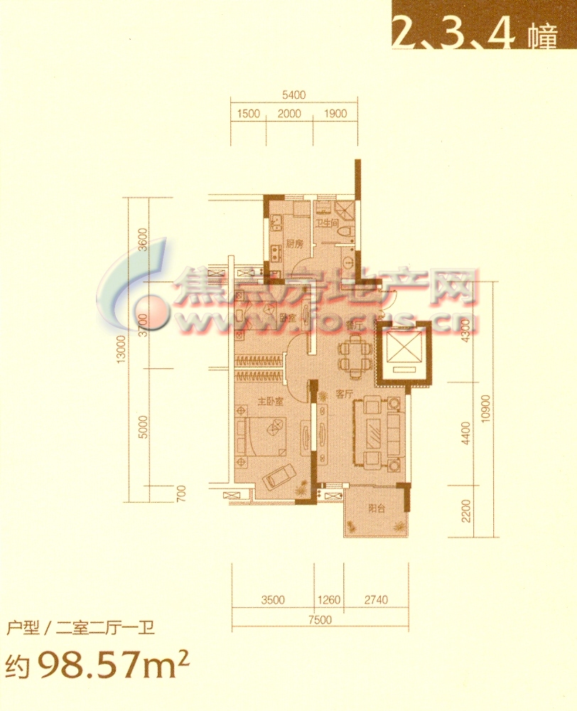 2室2厅1卫-九月庭院二室二厅一卫约98.57平米