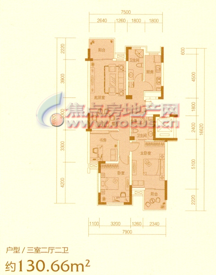 3室2厅2卫-九月庭院三室二厅二卫约130.66平米户型