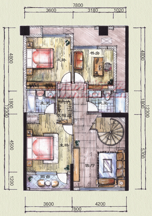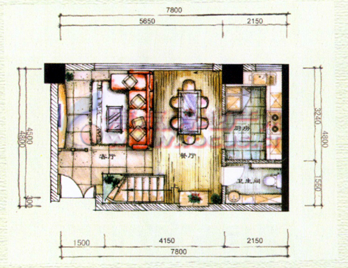 2室2厅1卫-旅游红苹果2室2厅1卫70.8平方米B