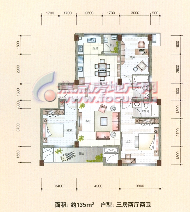 3室2厅2卫-万科魅力之城135平方米3室2厅2卫
