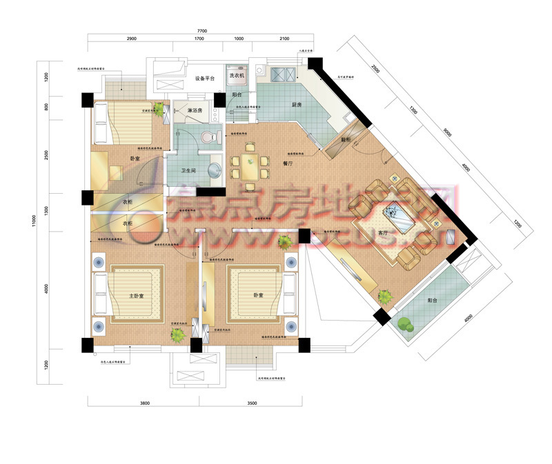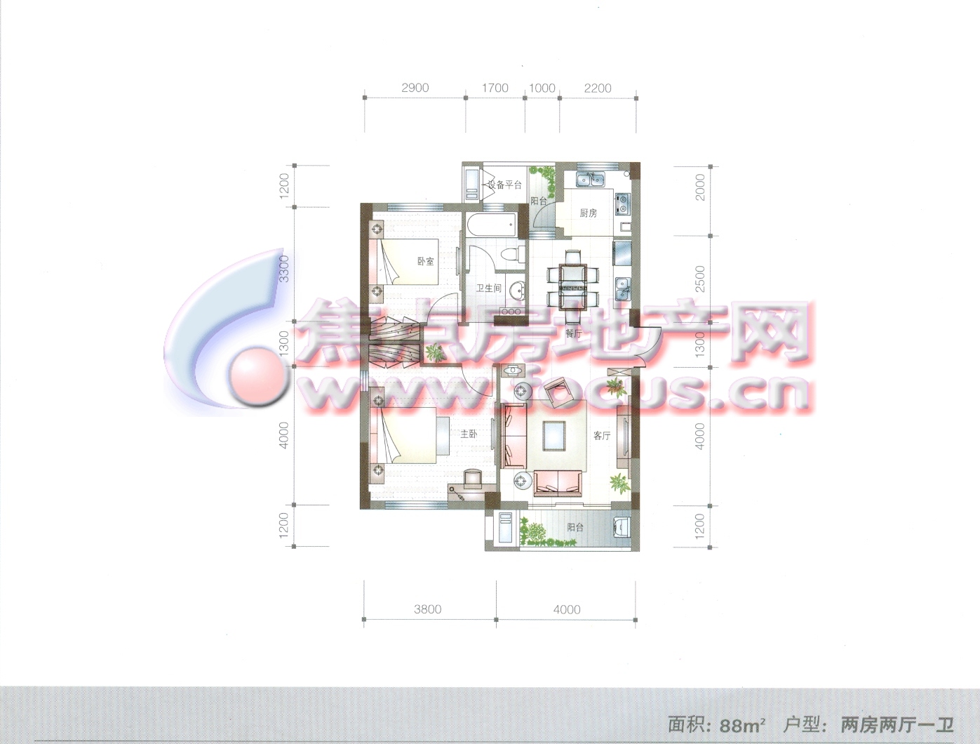 2室2厅1卫-万科魅力之城2室2厅1卫88平方米