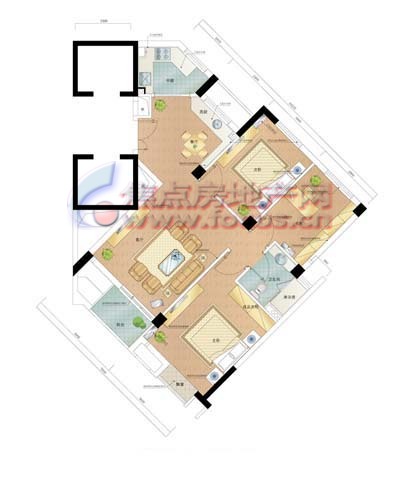 户型设计拒绝空间浪费,讲究舒适性,强调在相同面积内拥有更大的面宽、更多的实用空间。复合式厨房等创意空间的设计增添舒适与生活情趣。以89平米经典两房为代表的集约户型将成为都市菁英的理想居住空间。