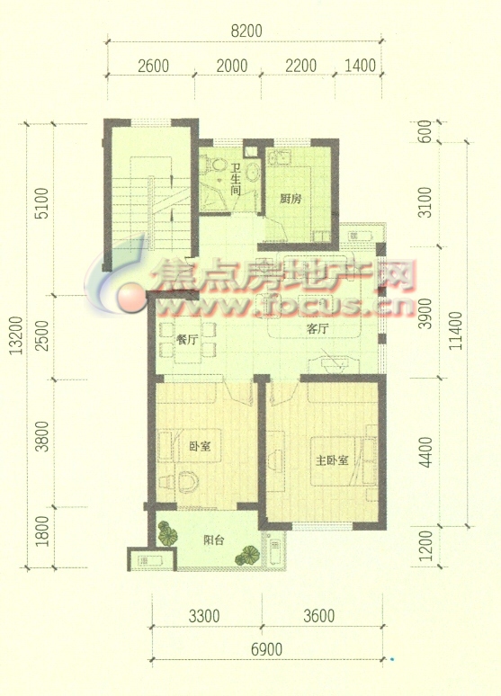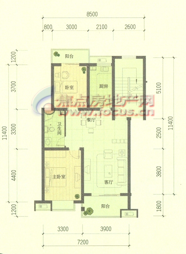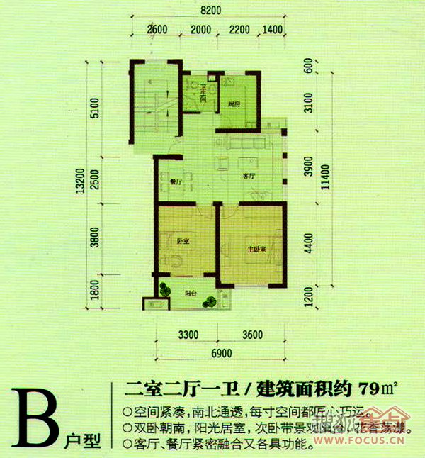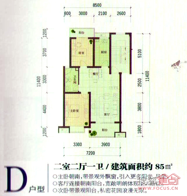 2室2厅1卫-华源·福临花苑B 85平方米2室2厅1卫
