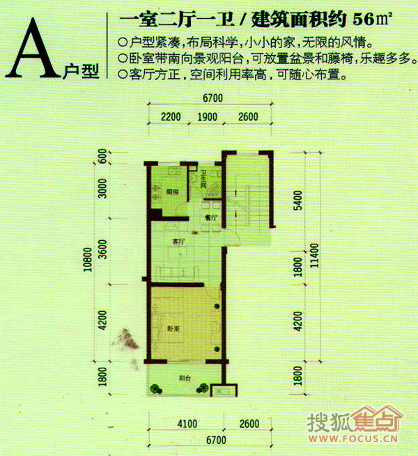1室2厅1卫-华源·福临花苑1室2厅1卫56方A