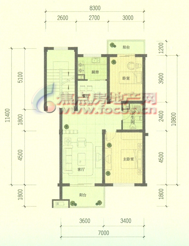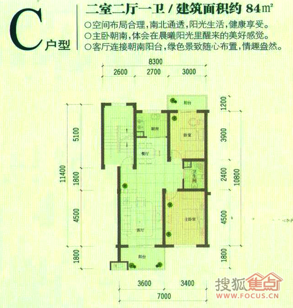 2室2厅1卫-华源·福临花苑2室2厅1卫84方C