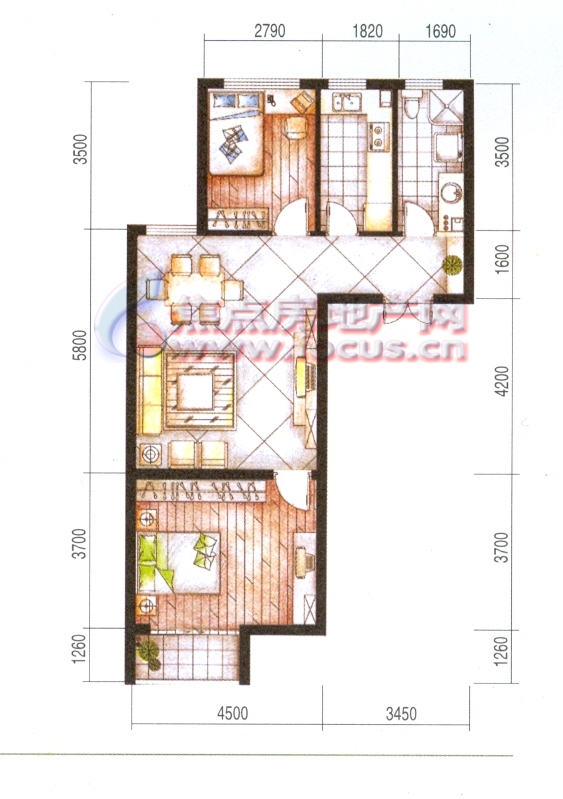 2室1厅1卫-汇隆风林公寓1#楼T 89.9平方米2室1厅1卫