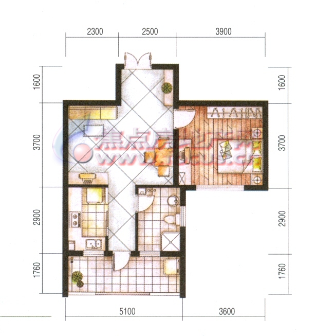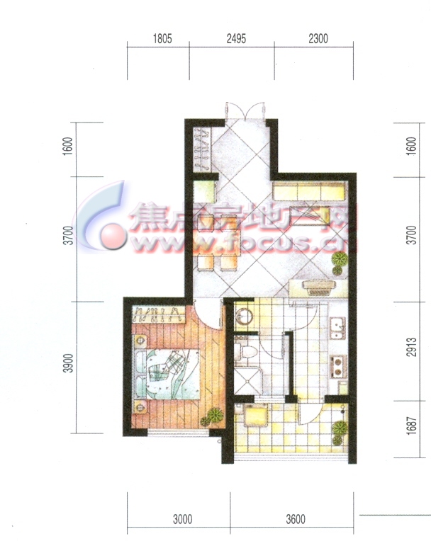 1室1厅1卫-汇隆风林公寓1#楼E 60.7平方米1室1厅1卫