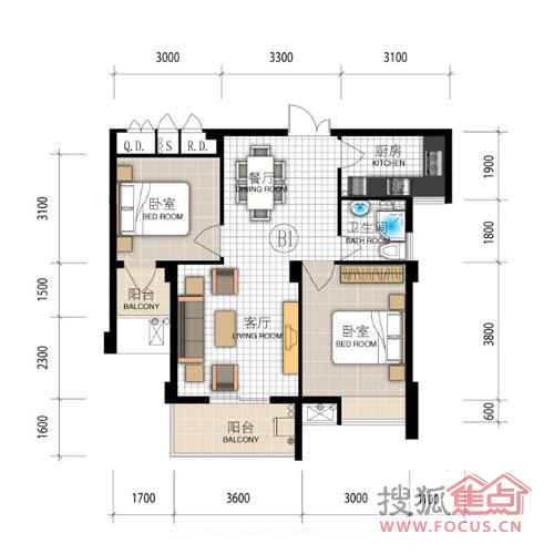 3室2厅1卫-联合.格里 约75方 2室2厅1卫1厨75㎡