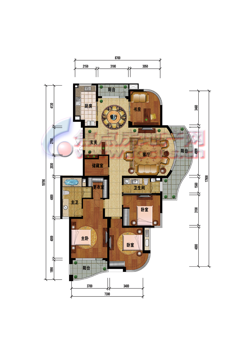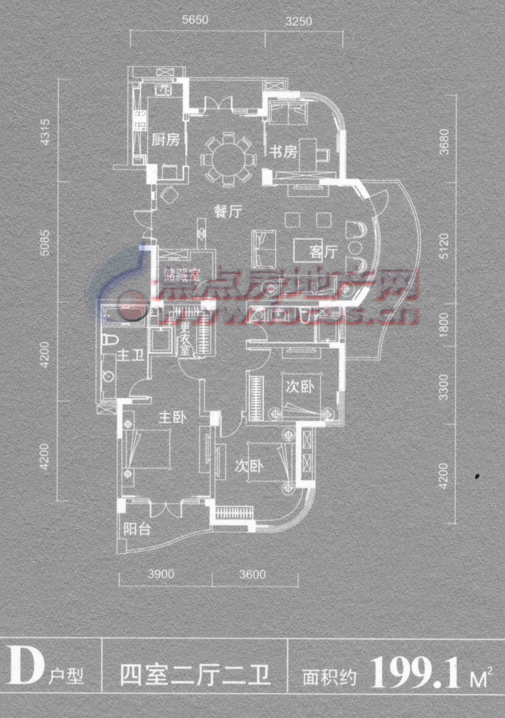 0室-丽江公寓199.1平米D户型四室二厅二卫