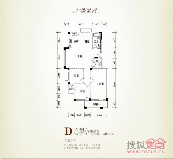3室2厅2卫-华庭嘉苑三室二厅二卫约135平米-D