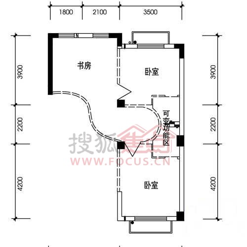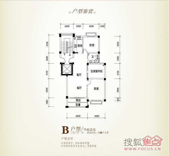 2室2厅1卫-华庭嘉苑二室二厅一卫约90平米-B