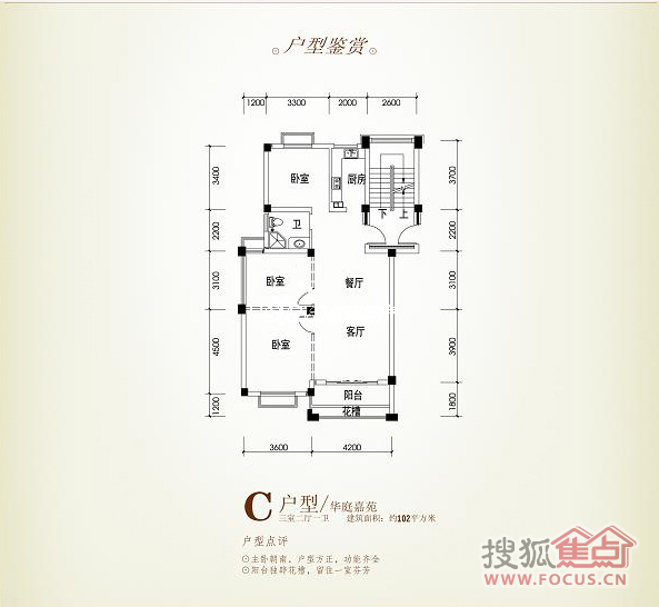 3室2厅1卫-华庭嘉三室二厅一卫约102平米-C
