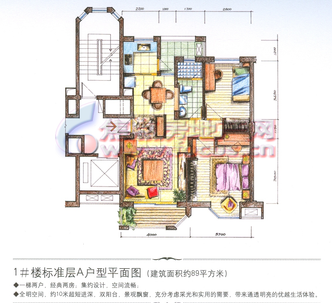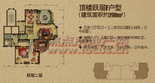 建筑户型设计具有很大的跨度,90-170平米不等具有很强的适应性和可分性,但各种层次的户型力求功能布局的经典并充分考虑平面和立面风格的协调。外管线、空调外机的全隐蔽等人性化设计体现了开发商对人性和细节的关爱。