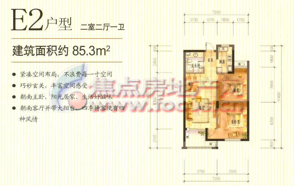 0室-摩卡上品E2二室二厅一卫85.3平米
