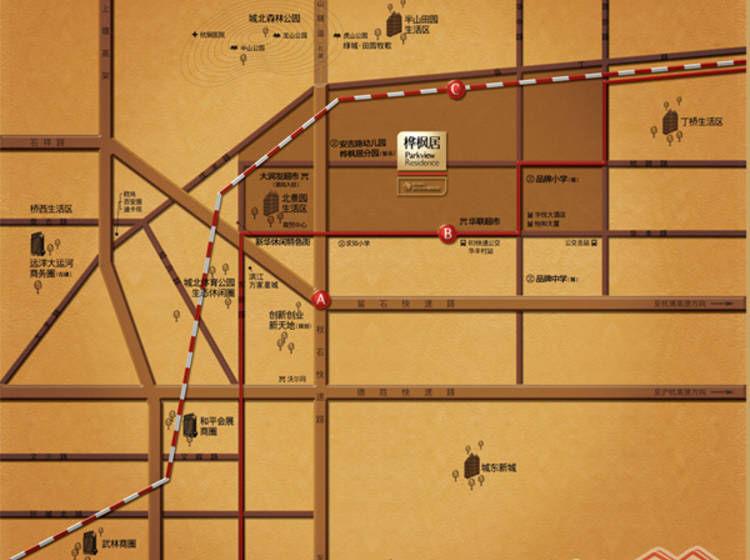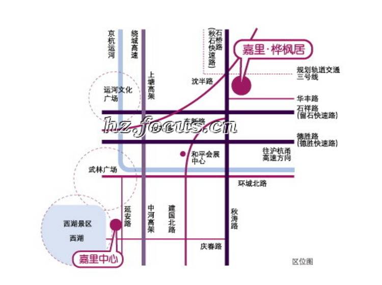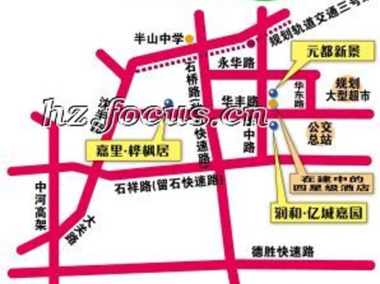 交通:在建中的“井”字高架——秋石快速路和留石快速路将与中河—上塘高架以及德胜快速路连通,再加上已开通的快速公交3号线及规划中的地铁3号线,以桦枫居为原点,可快速通达武林广场、钱江新城等主城区各繁华要地。
