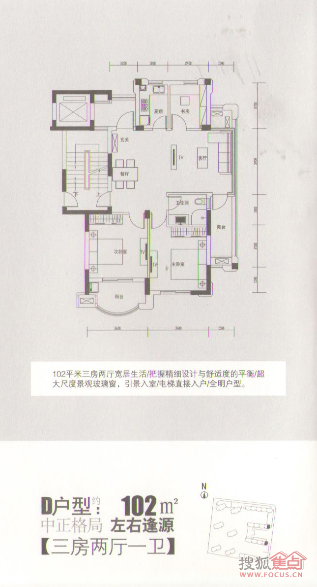 0室-德信·泊林公寓102平米-3室2厅1卫-D户型