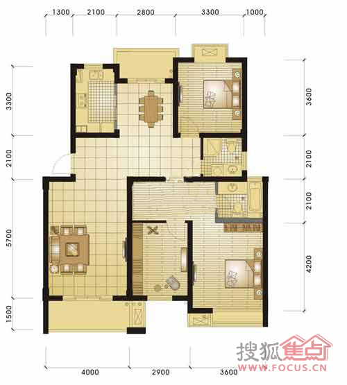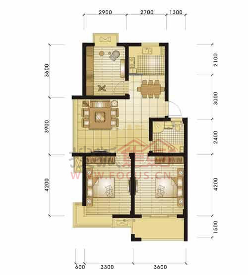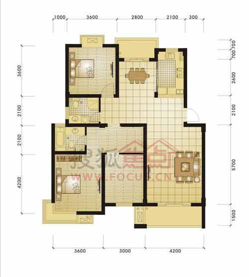 2室2厅1卫-2室2厅1卫81.96平方米A1户型
