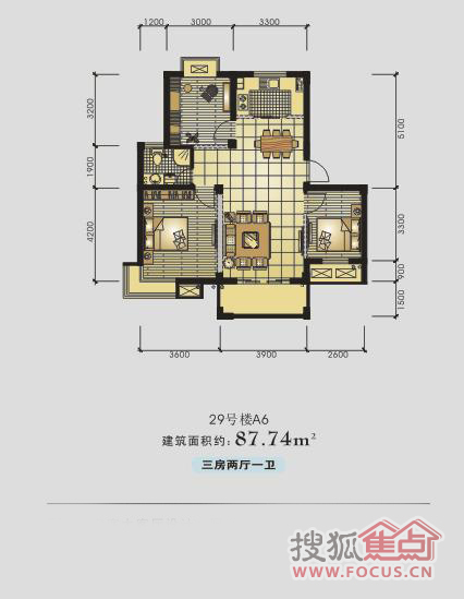 2室2厅1卫-2室2厅1卫87.32平方米A4-1户型