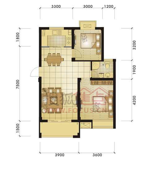 2室2厅1卫-2室2厅1卫78.01平方米户型