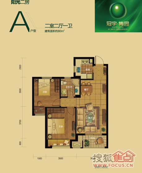 2室2厅1卫-2室2厅1卫80方A户型