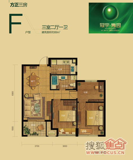 3室2厅1卫-3室2厅1卫89方F户型