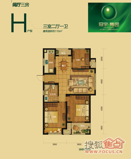 3室2厅1卫-3室2厅1卫110方H户型