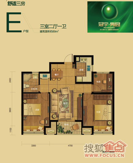 3室2厅1卫-3室2厅1卫89方E户型