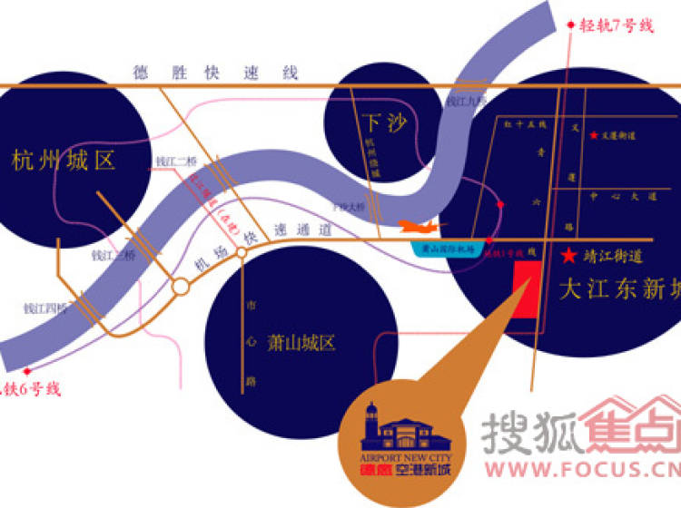 德意空港国际,德意置业2010年鸿篇巨制,占据未来“大江东新城”四大城区——空港新城核心领地,倚靠杭州萧山国际机场,机场快速 通道半小时直达杭州主城区。