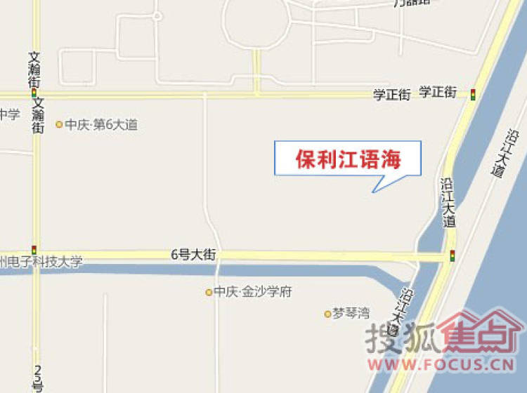 保利江语海项目东至沿江大道绿化,南至六号大街绿化,西面是规划经济适用房空地,北面是规划教育用地,东南角设计有小型市政绿地。地块的核心优势在于南向一线临江,景观资源优越。
