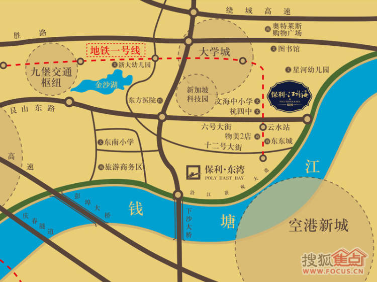 保利江语海位于杭州下沙经济开发区东南沿江板块,项目占地面积52655平方米,容积率2.6,总建筑面积173298平方米,是一个中等规模的高尚江景社区。