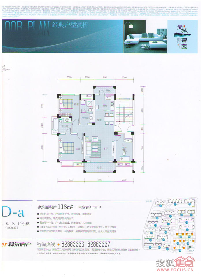 科尔南城景园,占地面积约7万方,总建筑面积约10多万方(不包括地下室),由多层、小高层及少量临街商铺共同构成。社区处处呈现精致舒适的主题:总体布局均好平衡,建筑简洁雅致,景观倡导自然生态;约1.7的低容积率、小于25%的低密度建筑,与外在生态水景构成现代生活稀有舒适环境;主力户型约80-130方,一梯两户,户户全明,拥有较高得房率,达到经济性与舒适性的平衡。