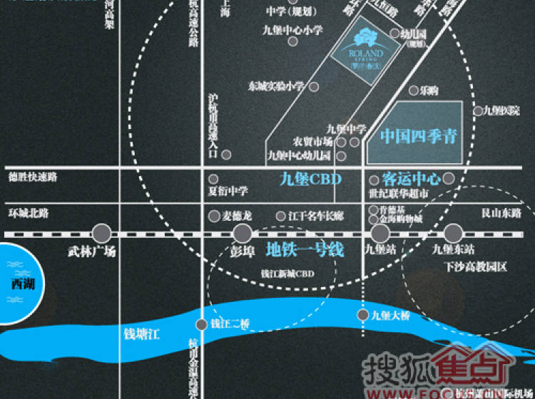 华鸿罗兰春天位于江干区九堡CBD核心,与中国服装航母四季青交易中心隔路对望;紧邻地铁一号线九堡东站;快速公交、近10条公交线路、德胜快速路、杭海路构筑市区快速交通网络,充分享受便捷都市生活;临近沪杭甬金温高速枢纽。