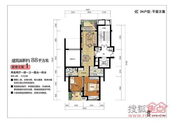 2室2厅1卫-2室2厅1卫88平米D1-方案三