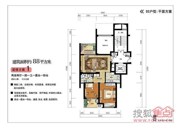 2室2厅1卫-2室2厅1卫88平米D1-方案一