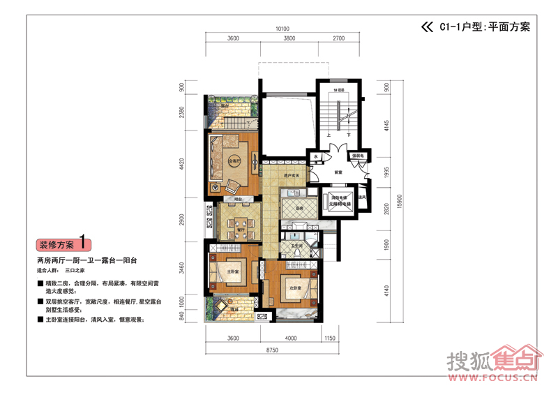 2室2厅1卫-2室2厅1卫C1-1偶数层-(装修方案1)